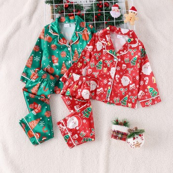 Navidad vacaciones ropa de dormir Santa Claus árbol de Navidad manga larga botón Arriba Tops pantalones niños Pijamas