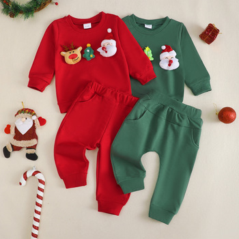 2025 Otoño Invierno niños sudadera de algodón pantalones sólidos conjunto de ropa de Navidad listo para enviar