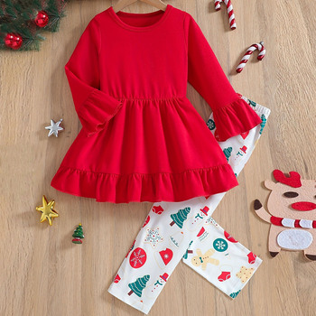 2025 תינוק ופעוטות שרוול puff חולצות חולצות חצאית קצרה חג המולד תינוק