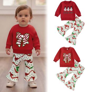 Commercio estero in natale nuova felpa a maniche lunghe ricamata con fiocco Casual da ragazza in poliestere/cotone + pantaloni lunghi svasati